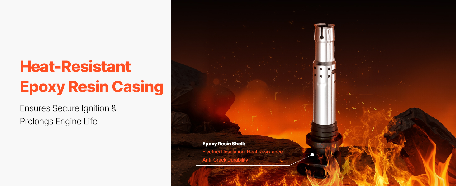 Plášť sady zapaľovacích cievok z epoxidovej živice poskytuje elektrickú izoláciu, vysokú tepelnú odolnosť a odolnosť proti praskaniu, čím zabezpečuje bezpečné zapaľovanie a predlžuje životnosť motora.