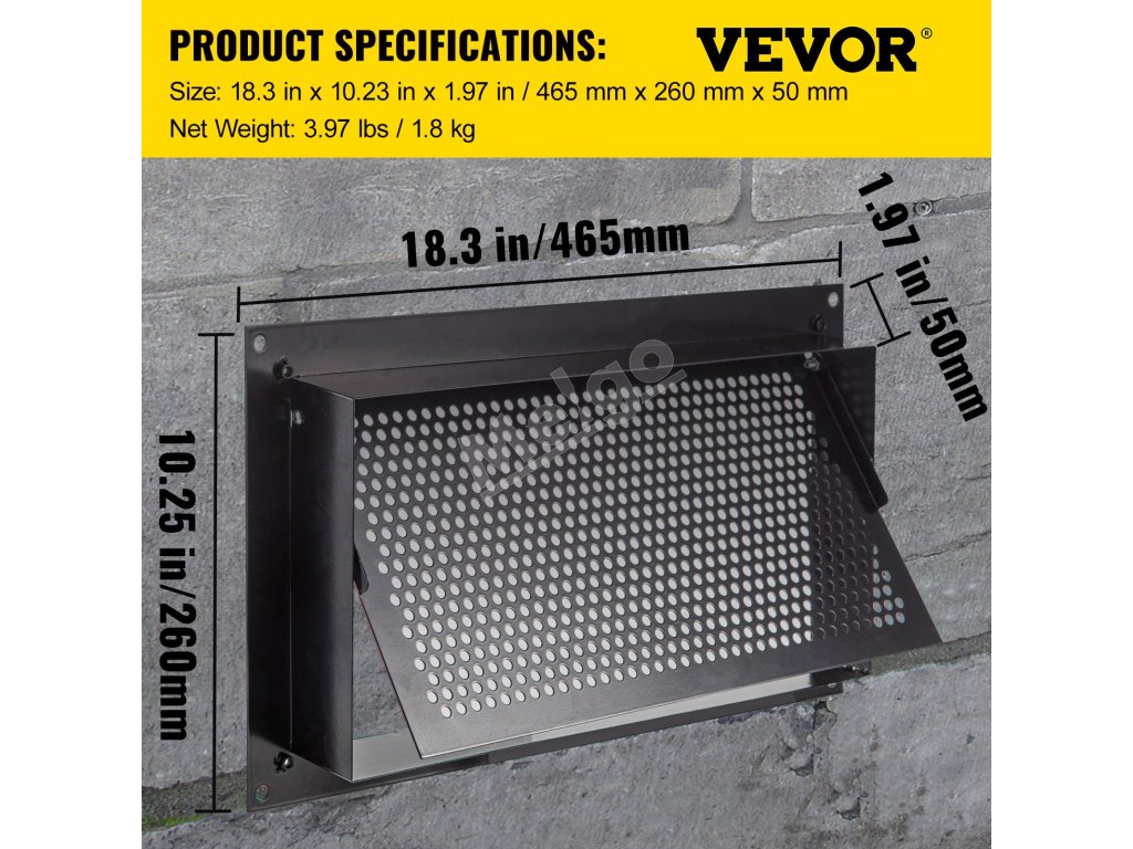 Inžinieri skonštruovali tento základový protipovodňový vetrací otvor VEVOR na spoľahlivý výkon v najnáročnejších poveternostných podmienkach. Odoláva prudkým dažďom, silnému vetru a extrémnym teplotám, čím zabezpečuje nepretržitú funkčnosť, keď to najviac potrebujete. Tento spoľahlivý protipovodňový vetrací otvor pre skrine s plnou výškou poskytuje pokoj tým, že chráni váš dom počas nepriaznivých poveternostných udalostí. Vďaka svojej robustnej konštrukcii je spoľahlivým doplnkom vášho protipovodňového systému.