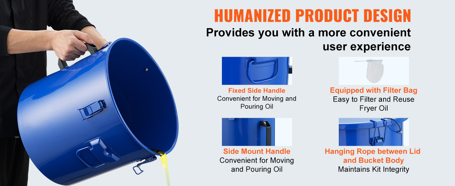 Už vás nebaví neustále vyprázdňovať odpadkový kôš? Naše vedro na tuk z fritézy vám kryje chrbát svojou obrovskou kapacitou. Je ideálne pre kuchyne, pretože vďaka nemu je filtrovanie, skladovanie a premiestňovanie oleja hračka!