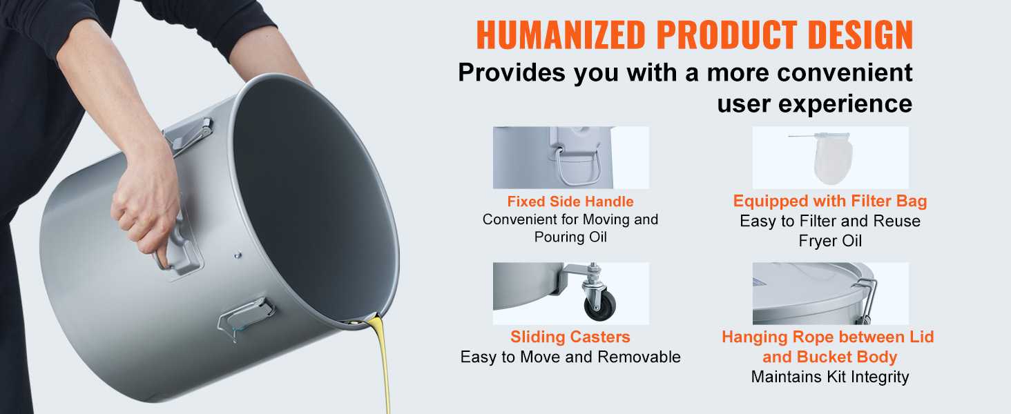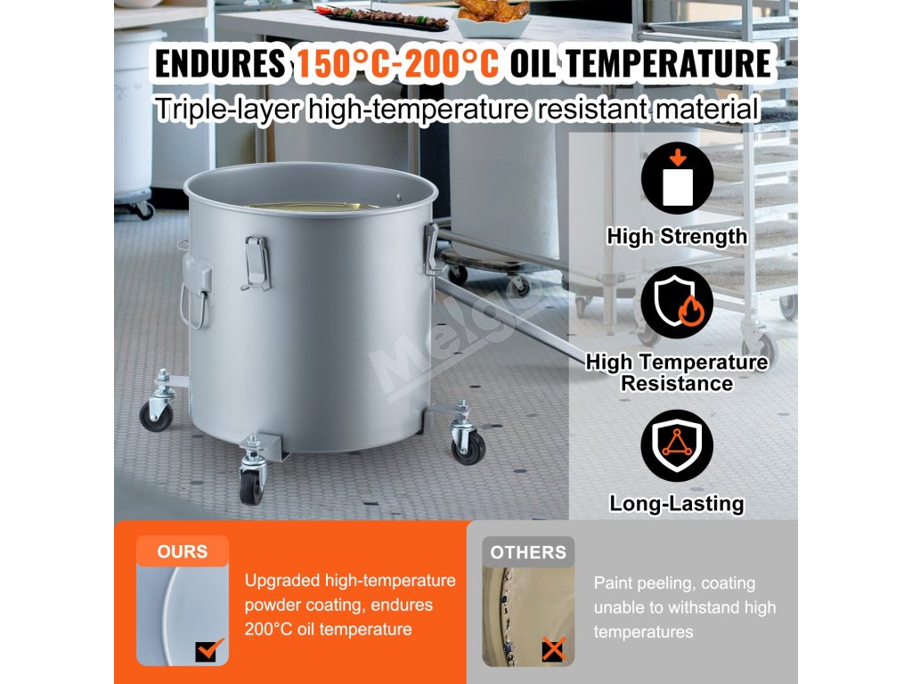 Už vás nebaví neustále vyprázdňovať odpadkový kôš? Naše vedro na tuk z fritézy vám kryje chrbát svojou obrovskou kapacitou. Je ideálne pre kuchyne, pretože vďaka nemu je filtrovanie, skladovanie a premiestňovanie oleja hračka!