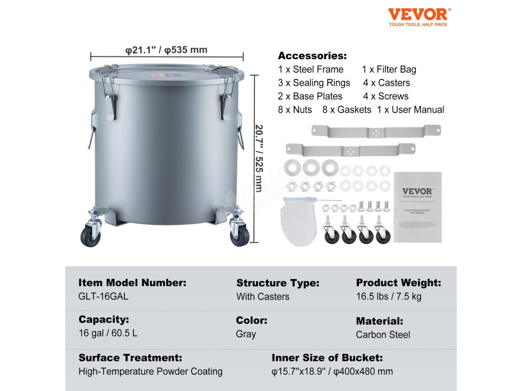 Vedro na tuk z fritézy VEVOR - jednoduchý zber kuchynského oleja