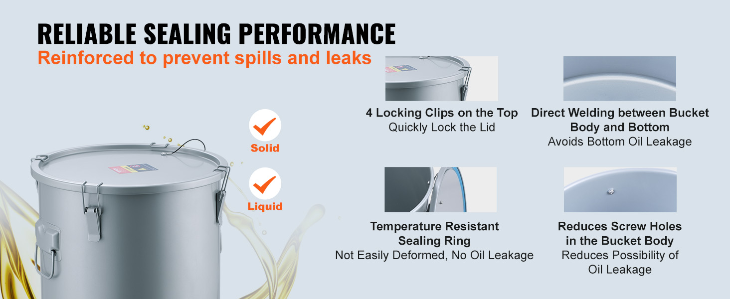Už žiadne špinavé rozliatie! Naše vedro na tuk je vybavené robustnými zámkami a zváraným dnom, aby váš olej zostal presne tam, kam patrí. Vďaka menšiemu počtu únikov a lepšiemu tesneniu je varenie oveľa čistejšie.