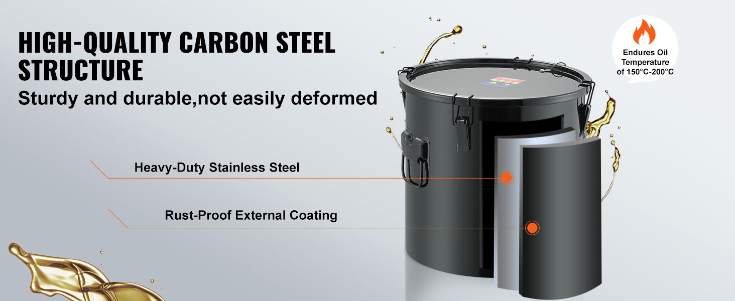 Už žiadne špinavé rozliatie! Naše vedro na tuk je vybavené robustnými zámkami a zváraným dnom, aby váš olej zostal presne tam, kam patrí. Vďaka menšiemu počtu únikov a lepšiemu tesneniu je varenie oveľa čistejšie.