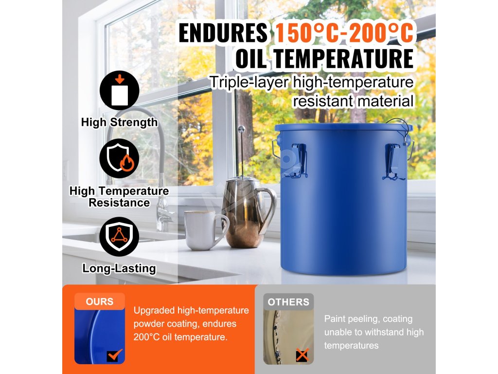 Už vás nebaví neustále vyprázdňovať odpadkový kôš? Naše vedro na tuk z fritézy vám kryje chrbát svojou obrovskou kapacitou. Je ideálne pre kuchyne, pretože vďaka nemu je filtrovanie, skladovanie a premiestňovanie oleja hračka!