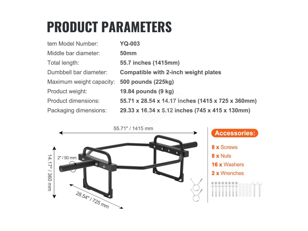 Trap bar na drepy a mŕtvy ťah dĺžka 55.7" priemer 25 mm 500 lbs