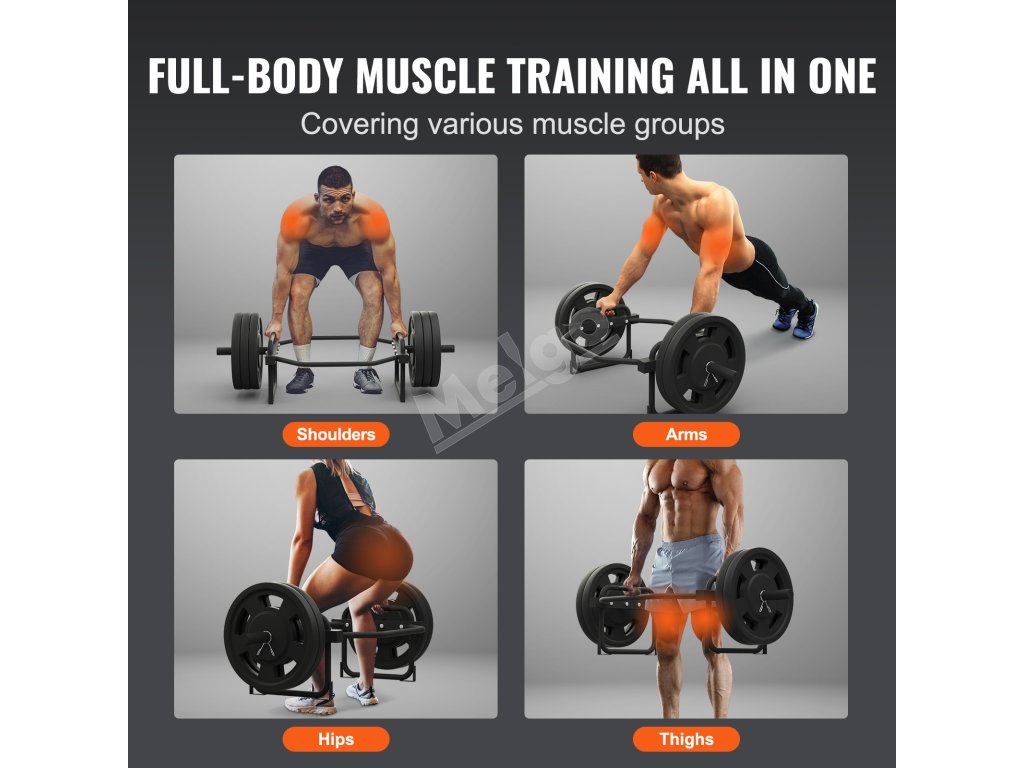 Na každý koniec môžete pridať ďalšiu záťaž a zvýšiť tak náročnosť a účinnosť tréningu, čím sa váš tréning stane rozmanitejším. Vybavené bezpečnostnými klipmi, ktoré zaisťujú stabilitu a spoľahlivosť záťažových dosiek, vďaka čomu sa môžete sústrediť na mŕtve ťahy a drepy.