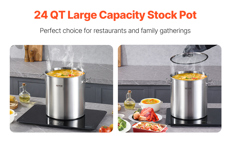 Hrniec na omáčku s objemom 24 QT dokáže naraz uvariť značné množstvo surovín, takže je vhodný na komerčné použitie v kuchyni aj na rodinné oslavy! Ideálny na dusenie, prípravu polievok, varenie v pare a vyprážanie!