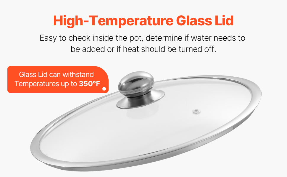 Komerčný hrniec na omáčku je vybavený sklenenou pokrievkou na vysoké teploty, ktorá odolá teplotám až do 350 °C, čo zaručuje bezpečné používanie.