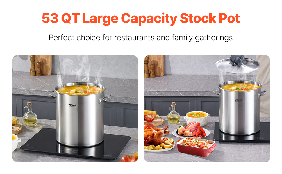 Hrniec na omáčku s objemom 53 QT dokáže naraz uvariť značné množstvo surovín, takže je vhodný na komerčné použitie v kuchyni aj na rodinné oslavy! Ideálny na dusenie, prípravu polievok, varenie v pare a vyprážanie!