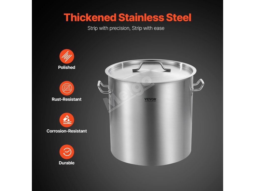 Hrniec na vývar, ktorý je celý vyrobený z vysokokvalitného materiálu z nehrdzavejúcej ocele, ponúka vynikajúcu tepelnú odolnosť a odolnosť proti korózii, čo zaručuje dlhú životnosť pri dusení pri vysokej teplote a varení kyslých surovín!