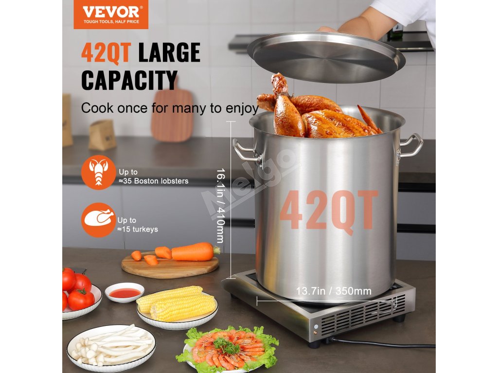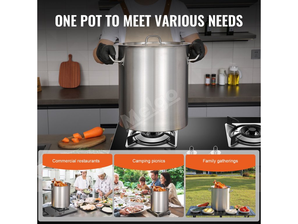 Do veľkokapacitného hrnca na polievku sa zmestí viac surovín naraz, čím sa ušetrí čas varenia. Dokáže spracovať aj veľké potraviny, ako je moriak a homáre, pričom zabezpečuje rovnomerný ohrev a dôkladné varenie.