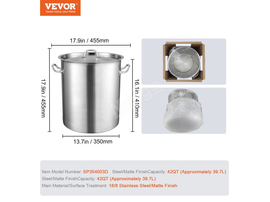 Nerezový vývarový hrniec kapacita 39.7 L s pokrievkou a rukoväťou