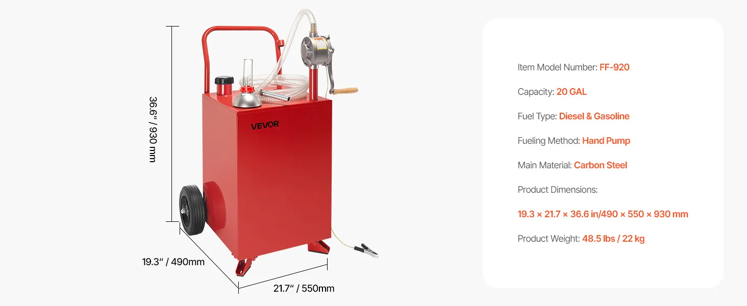 Ľahko natankujte palivo do viacerých strojov pomocou tohto priestranného veľkokapacitného zásobníka paliva, ktorý je ideálny na zvládnutie viacerých úloh spojených s tankovaním naraz.