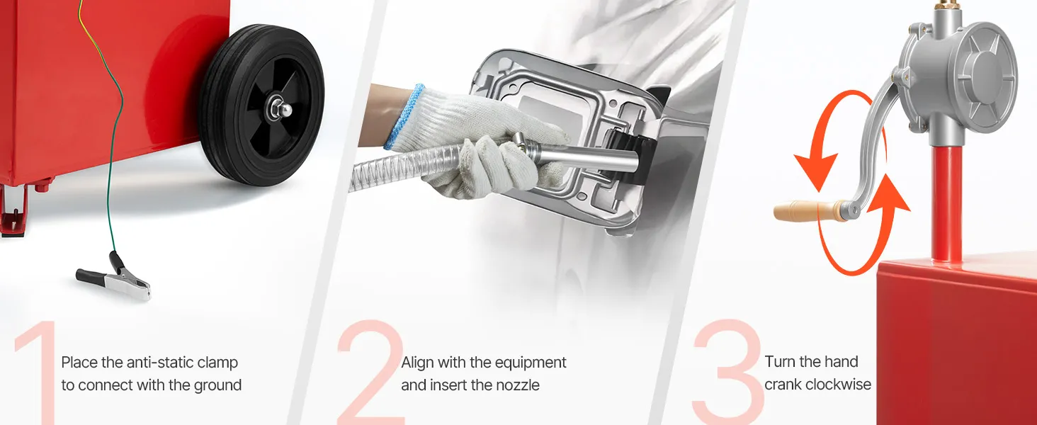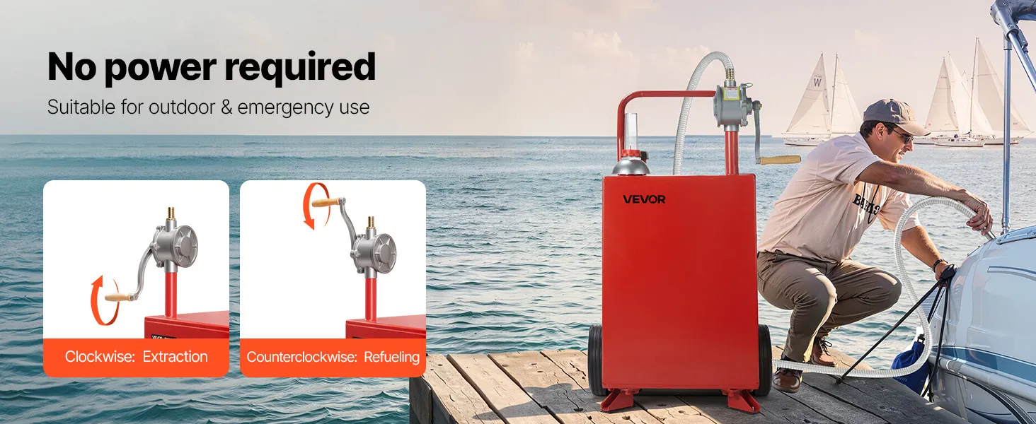 Náš zásobník na palivo bez námahy prečerpáva palivo pomocou jednoduchého pravotočivého alebo ľavotočivého čerpadla na rýchlu a plynulú prevádzku.