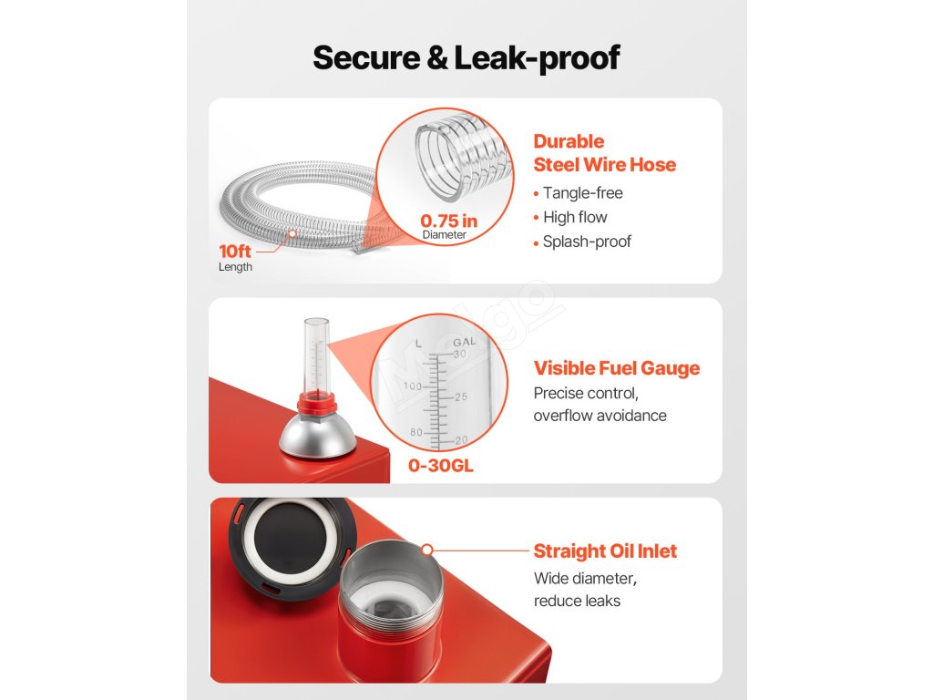 Ľahko natankujte palivo do viacerých strojov pomocou tohto priestranného veľkokapacitného zásobníka paliva, ktorý je ideálny na zvládnutie viacerých úloh spojených s tankovaním naraz.
