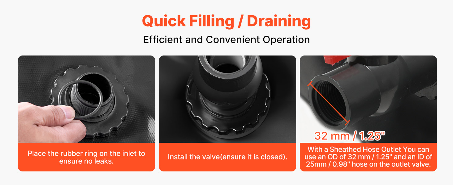 Naša skladacia nádoba na vodu je vybavená vstupmi a výstupmi s veľkým priemerom, ktoré zabezpečujú plynulý prietok vody a ľahkú kompatibilitu s rôznymi hadicami a vysokotlakovými čističmi. Ideálna na domáce použitie, kempovanie a iné outdoorové aktivity.