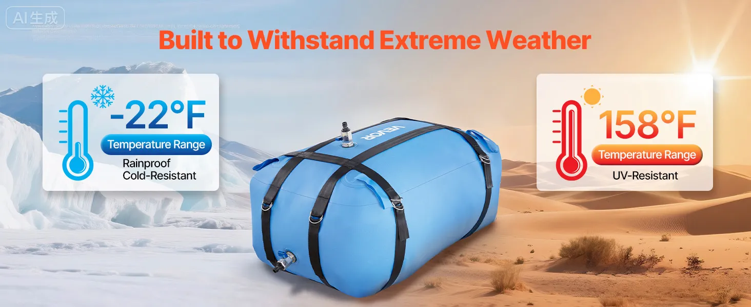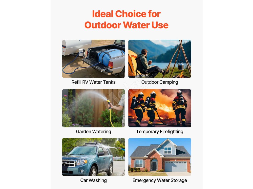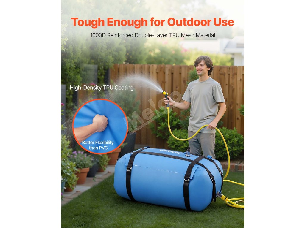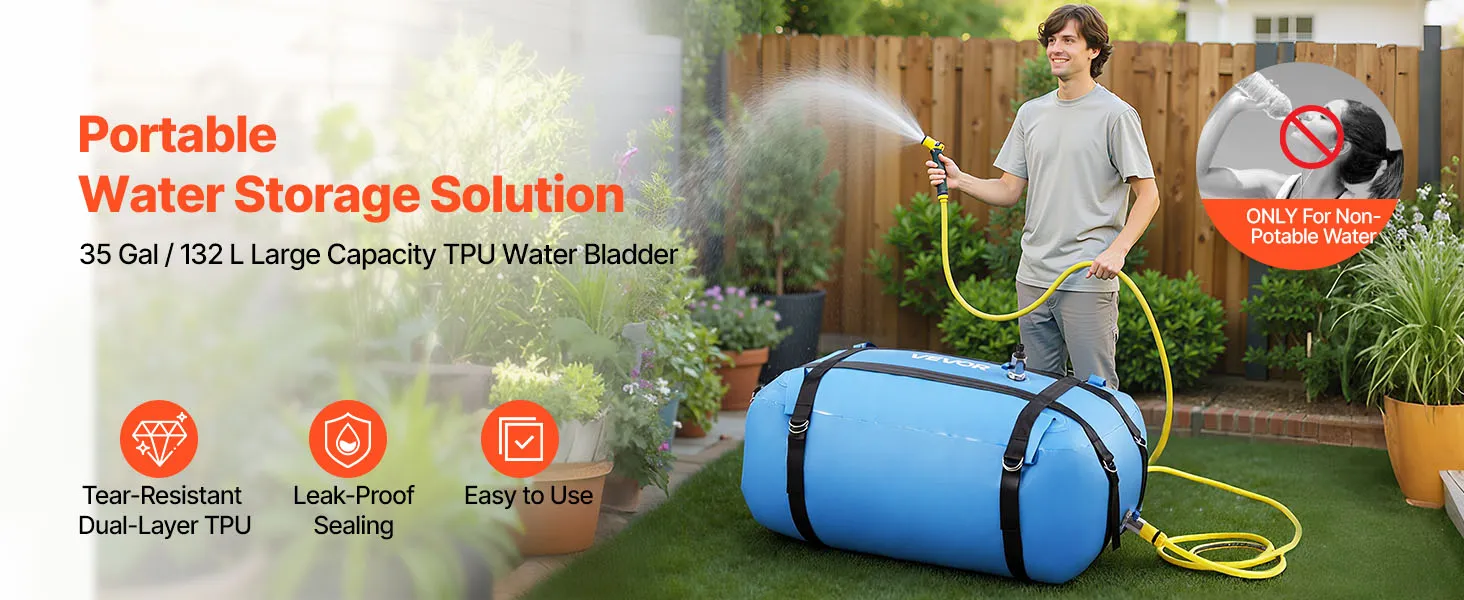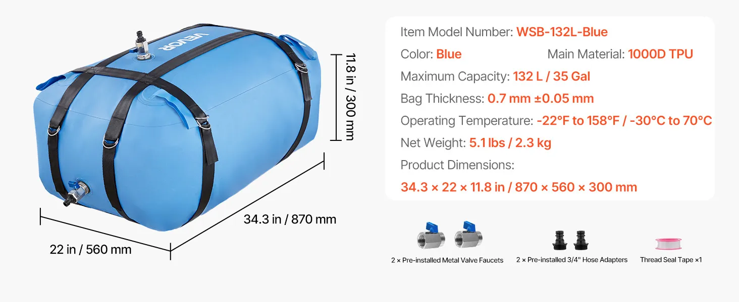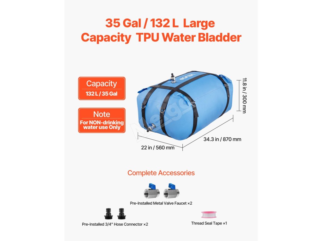 Tento 35 galónový vak na vodu je viacúčelovým riešením na skladovanie vody, ktoré zabezpečuje spoľahlivé zásobovanie vodou v exteriéri.
