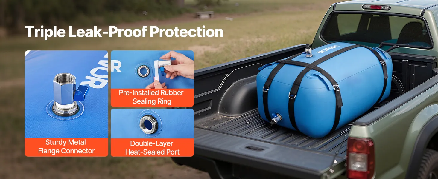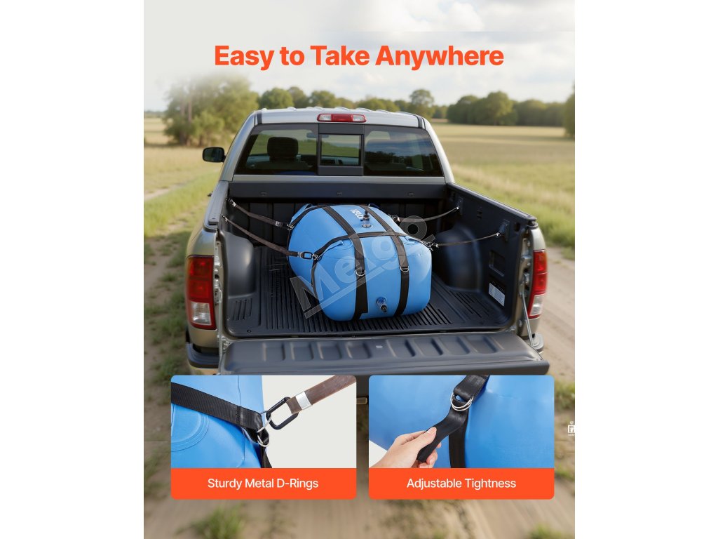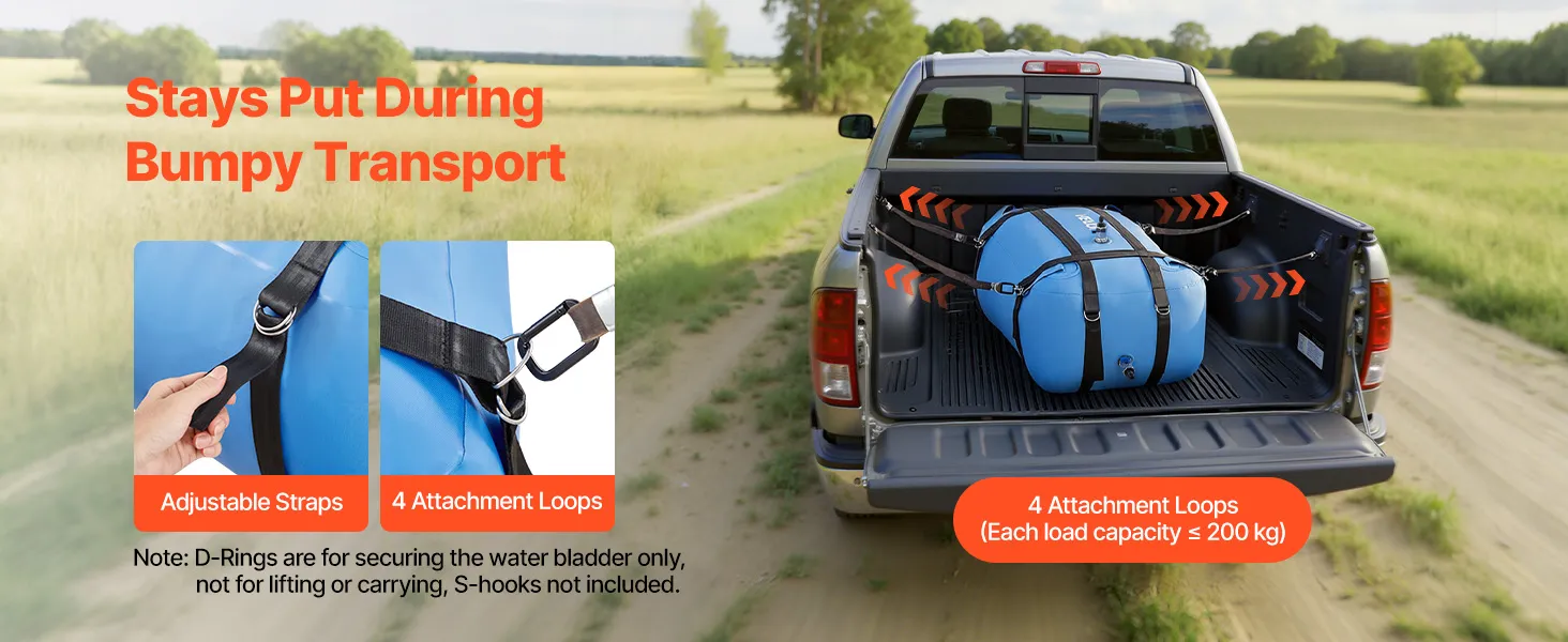 Udržiavajte vodný mechúr stabilný v lôžku pickupu, kufri SUV alebo na streche, čím sa zabráni jeho posúvaniu alebo kotúľaniu počas nerovnej jazdy a udrží sa stabilné ťažisko.