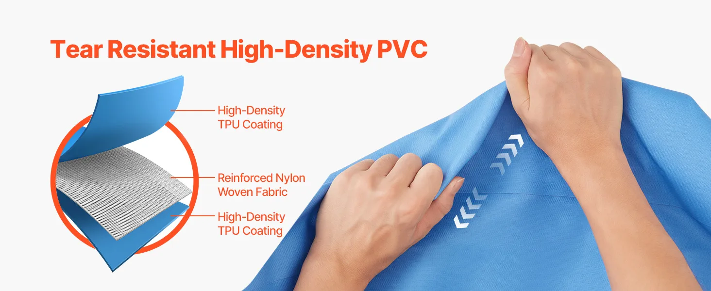 Vodný mechúr vyrobený z tepelne nataveného dvojvrstvového PVC s medzivrstvou zo sieťoviny je vysoko odolný, odolný proti roztrhnutiu, opotrebovaniu a vydrží veľký tlak.