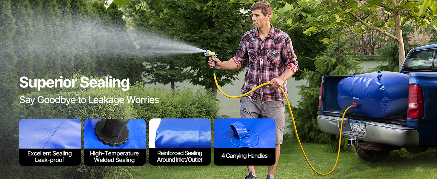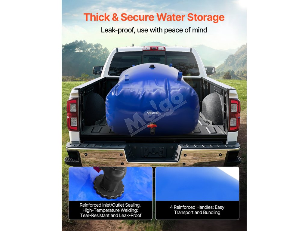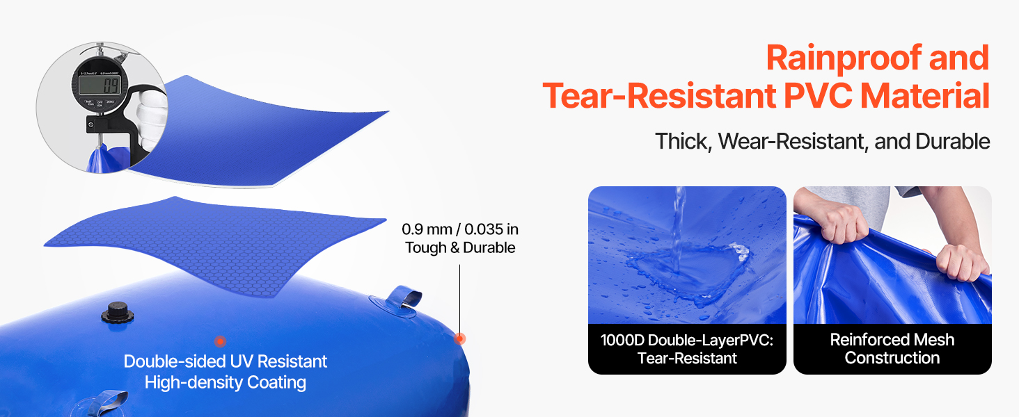 Táto nádrž na vodu vyrobená z odolného dvojvrstvového PVC 1000D je odolná voči dažďu, ohňu, opotrebovaniu a ľahko sa formuje, takže je ideálna na každodenné domáce použitie, vonkajšie aktivity, kempovanie a zavlažovanie v poľnohospodárstve.