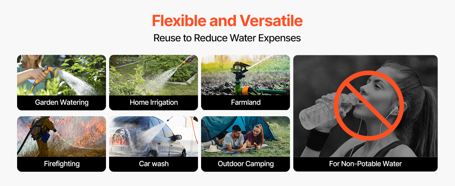 Či už ide o zavlažovanie záhrady, kempovanie alebo núdzové zásobovanie vodou, jej silné tesnenie a tesnosť zaisťujú maximálne využitie vody a poskytujú vyššiu účinnosť a spoľahlivosť, najmä v situáciách s nedostatkom vody.