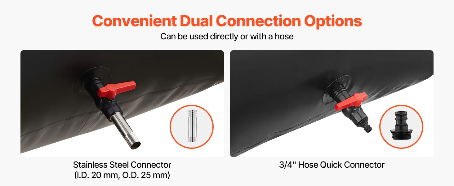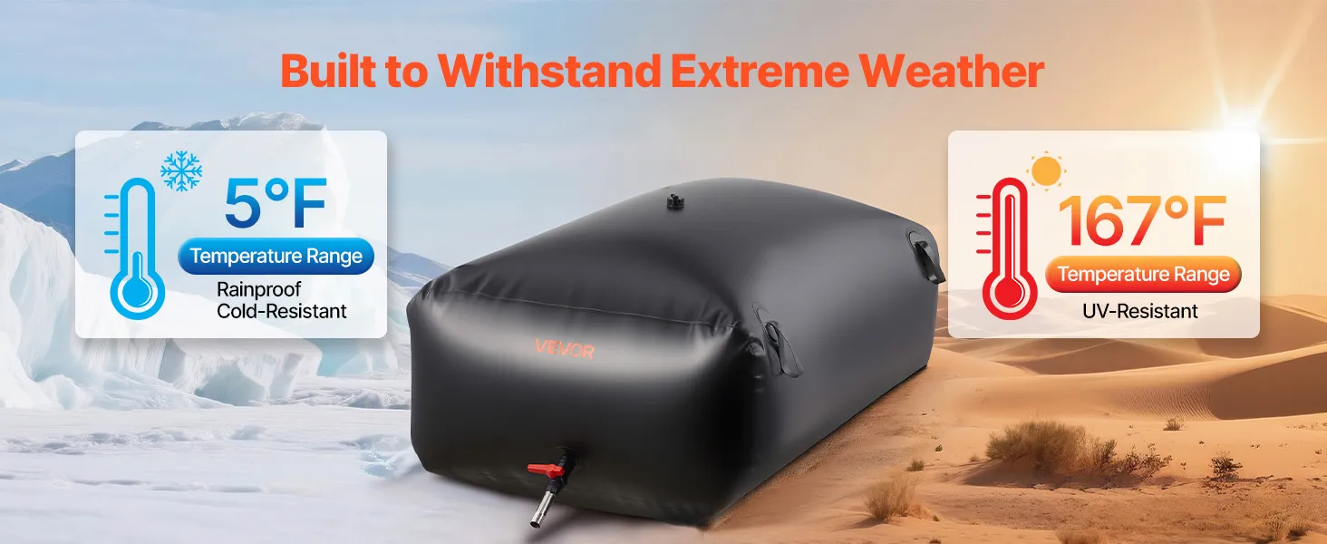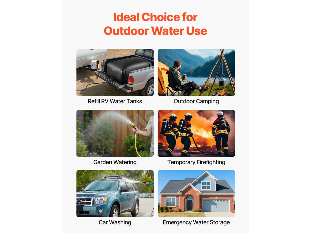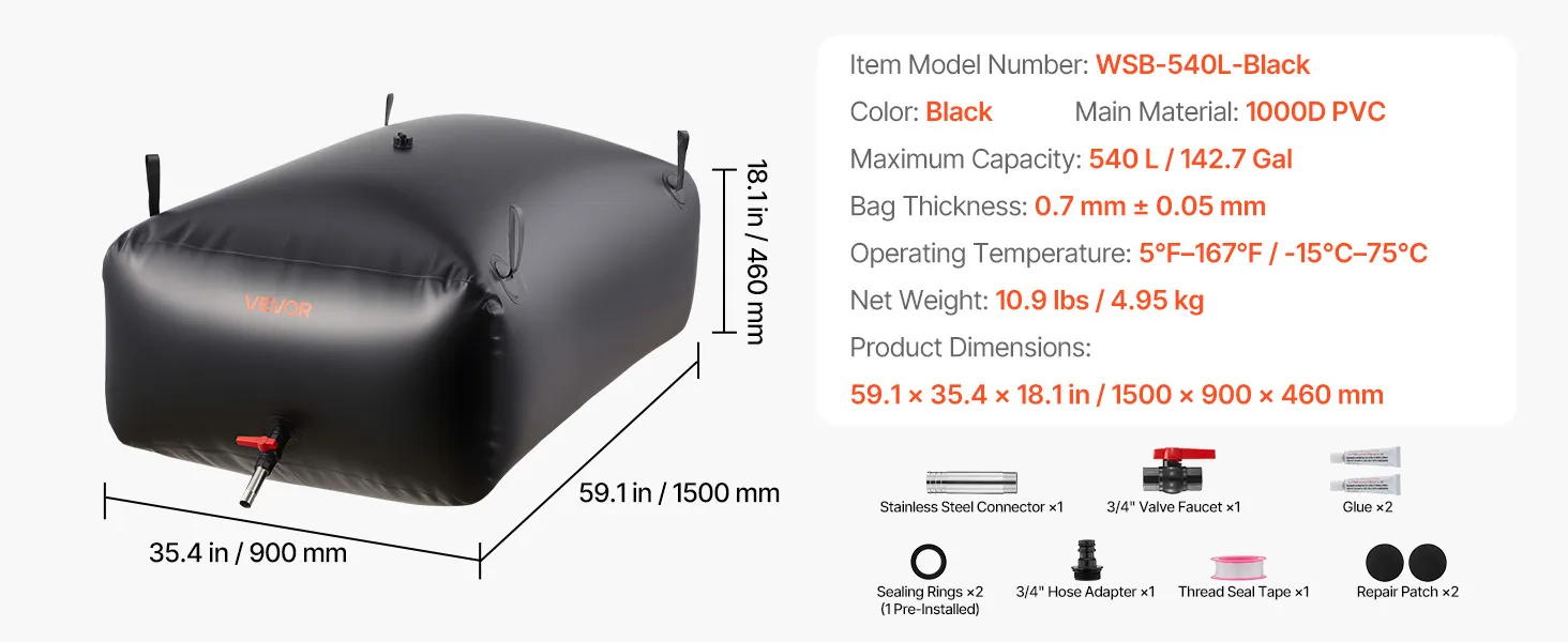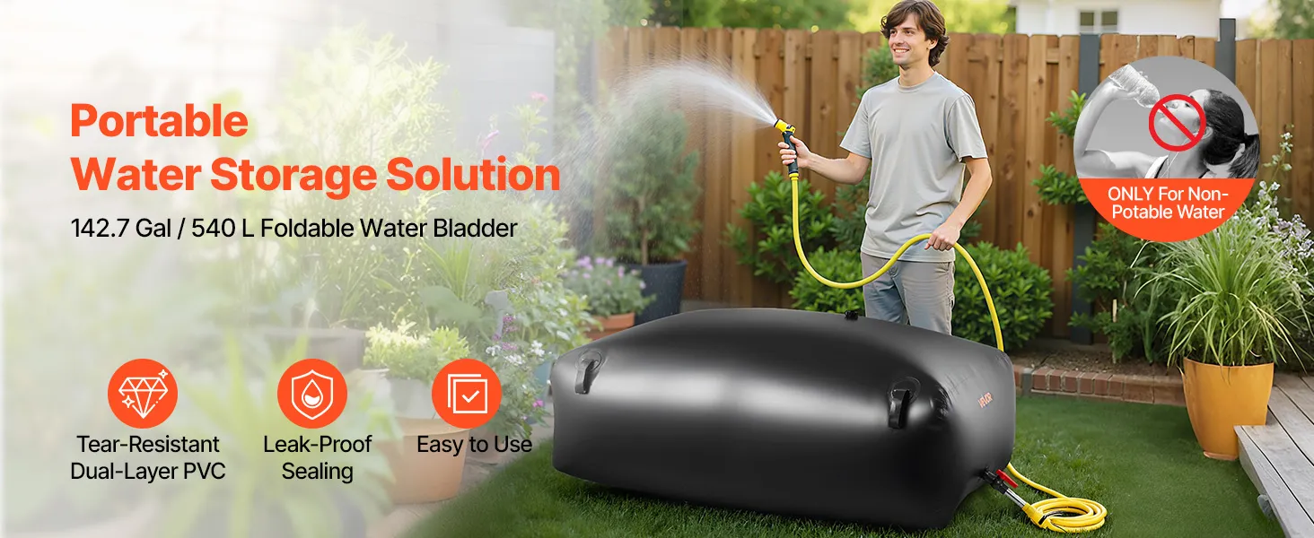 Tento skladací vak na vodu s objemom 142,7 galónov je viacúčelovým riešením na skladovanie vody, ktoré zabezpečuje spoľahlivé zásobovanie vodou v exteriéri.