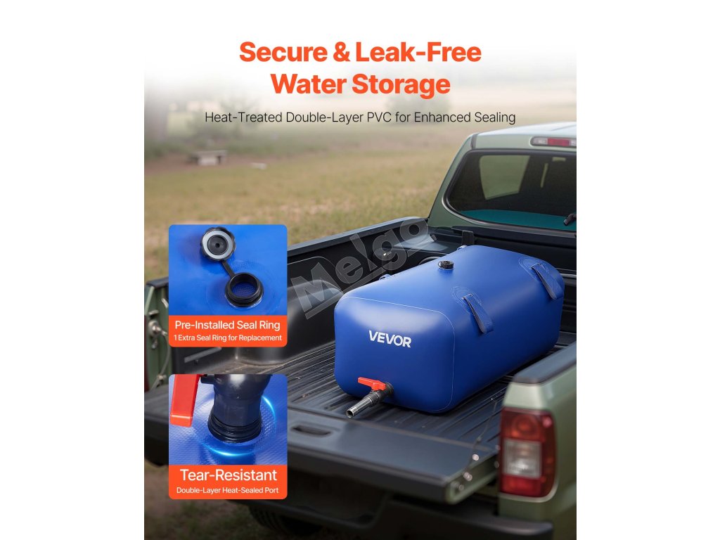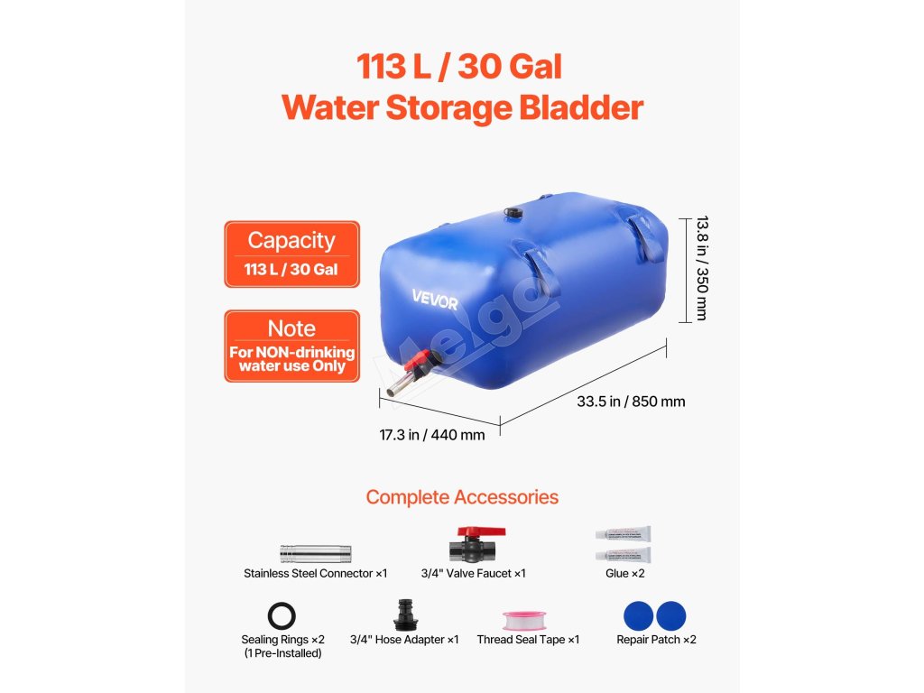 Tento skladací vak na vodu s objemom 30 galónov je viacúčelovým riešením na skladovanie vody, ktoré zabezpečuje spoľahlivé zásobovanie vodou v exteriéri.