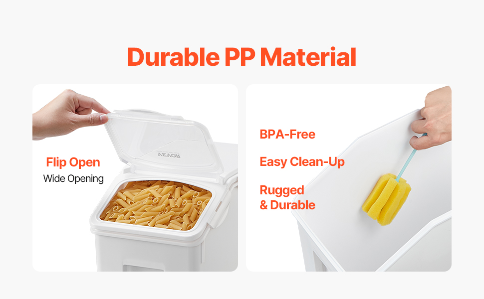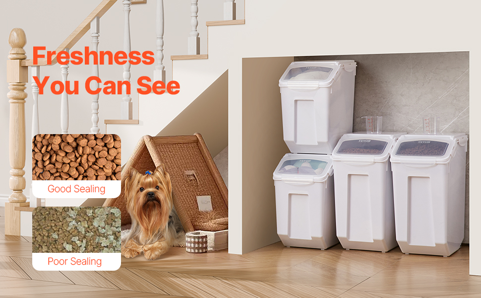 Táto nádoba na krmivo pre domáce zvieratá je vybavená 360° odnímateľnými kolieskami, ktoré zabezpečujú jednoduchý pohyb, aj keď je plne naložená. Či už prevážate ťažké krmivo pre domáce zvieratá alebo sypký suchý tovar, jeho premiestňovanie po kuchyni alebo skladovacích priestoroch je bezproblémové a pohodlné.