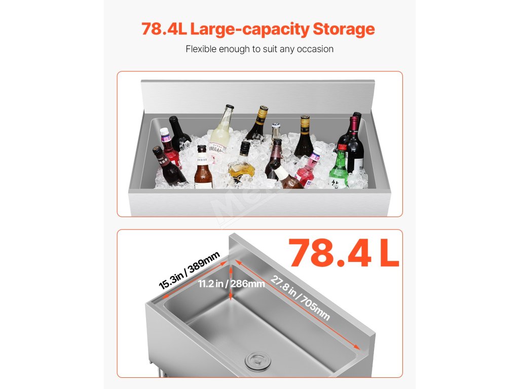 Nádoba na ľad 78.4 L 30×19×37 in nerezová, posuvné veko s držiakmi