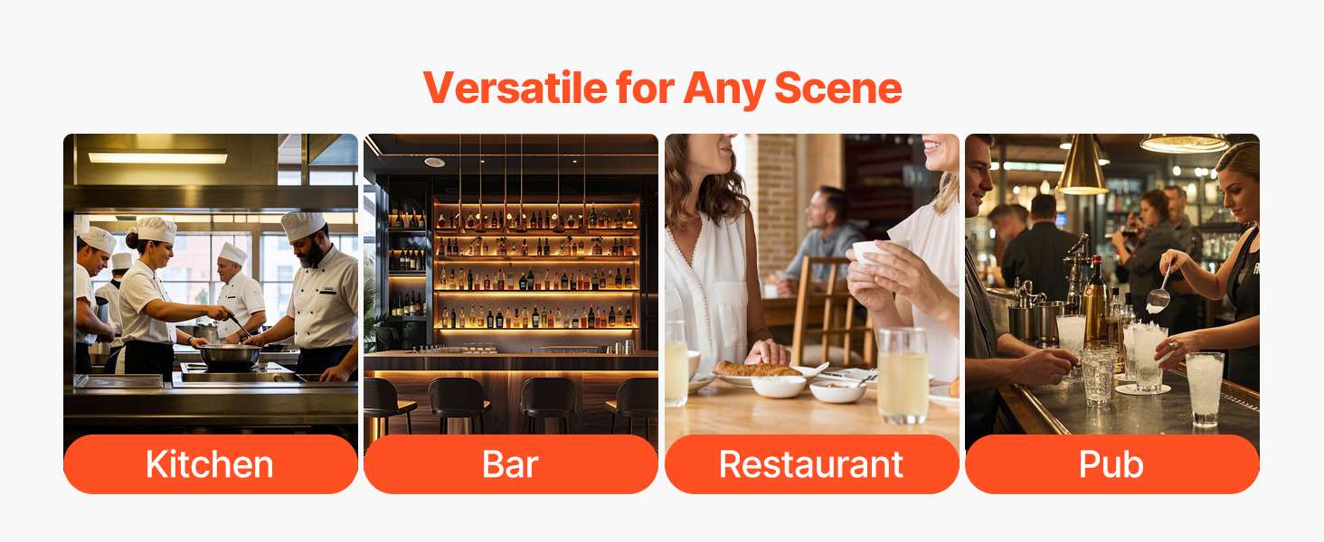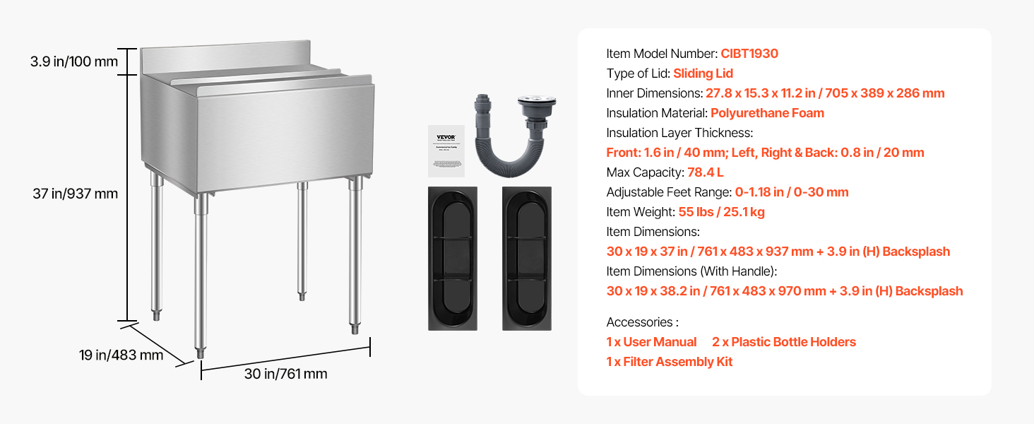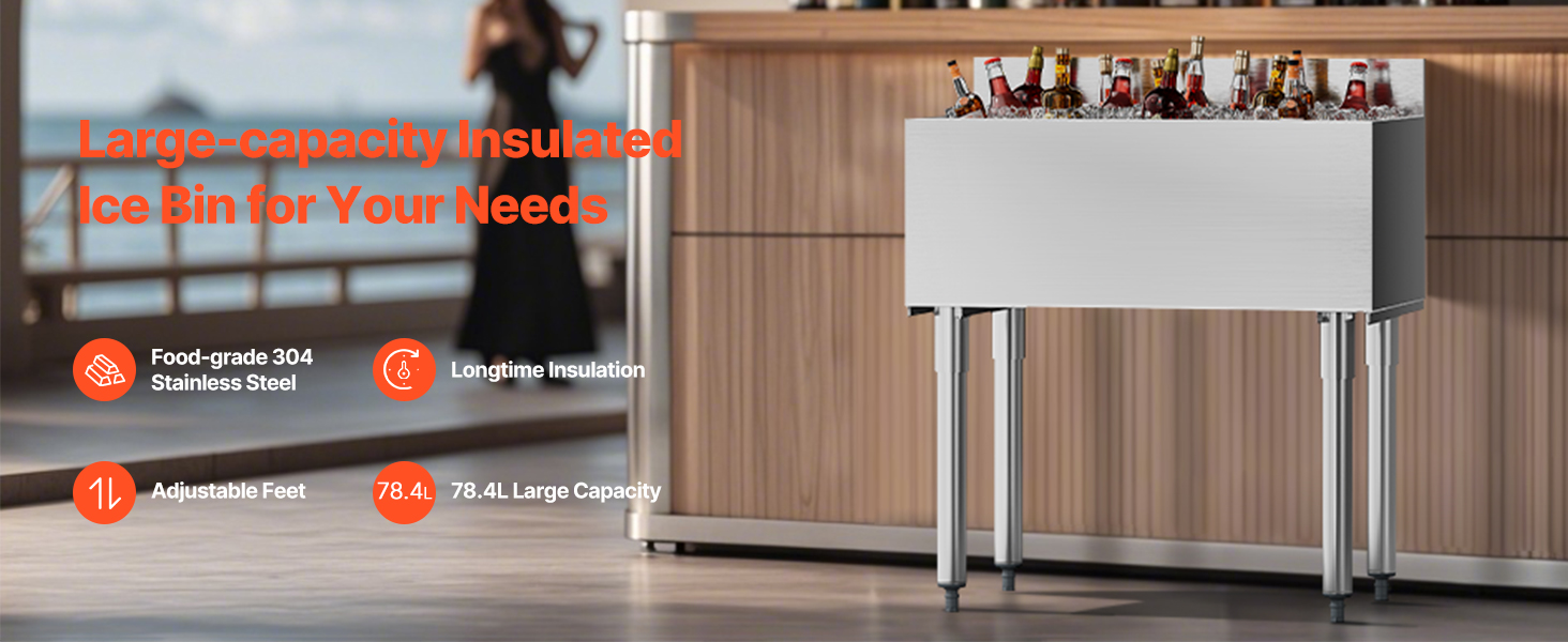 Náš komerčný zásobník na ľad s veľkou kapacitou 78,4 l kombinuje vynikajúcu izoláciu s pohodlnou funkčnosťou. Je vyrobený z potravinárskej nehrdzavejúcej ocele 304 a zaručuje, že ľad zostane zmrazený až 24 hodín. Je vybavená nastaviteľnými nožičkami, vďaka ktorým sa prispôsobí rôznym povrchom, čo je ideálne na všestranné použitie.