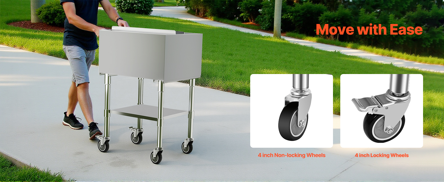Vďaka dvom 4-palcovým kolieskam s aretáciou a dvom 4-palcovým neblokovaným otočným kolieskam zabezpečuje náš stojaci chladiaci box presné ovládanie a stabilný pohyb aj pri veľkom zaťažení.