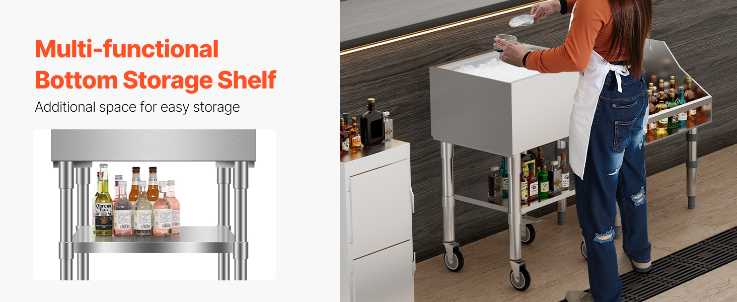 Vďaka spodnej úložnej polici naša chladnička na ľad z nehrdzavejúcej ocele nielenže rozširuje vaše možnosti skladovania, ale tiež umožňuje rýchle a jednoduché usporiadanie a vyberanie vašich položiek.