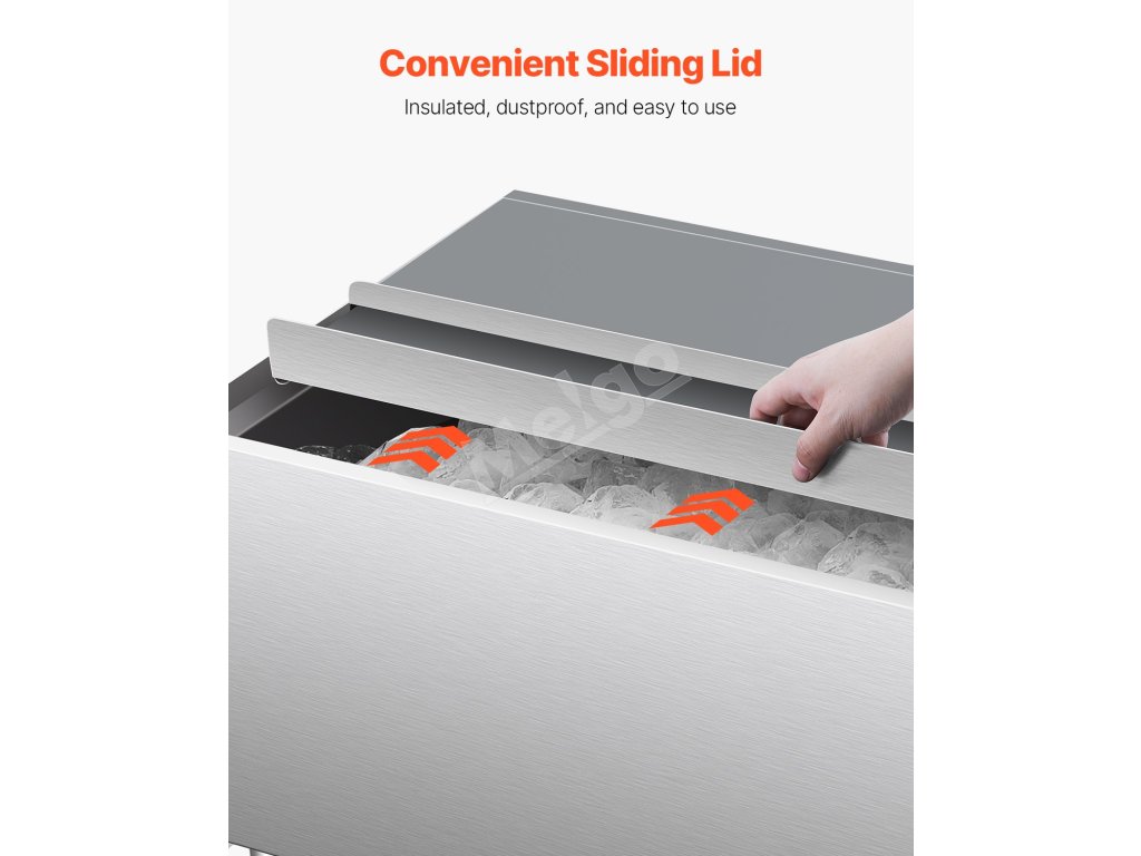 Nerezová nádoba na ľad 61.6 L, 24×19.1×36.8 in, kolieska, posuvné veko