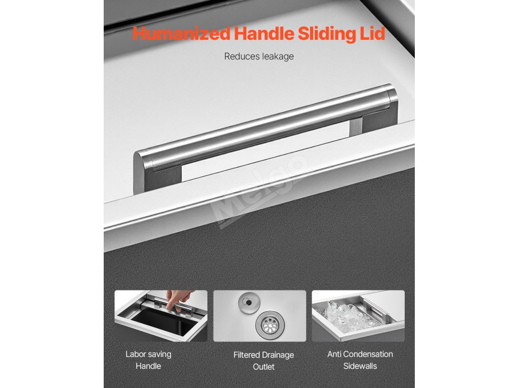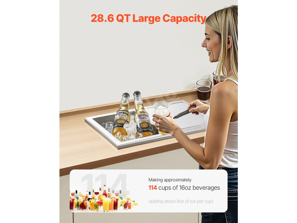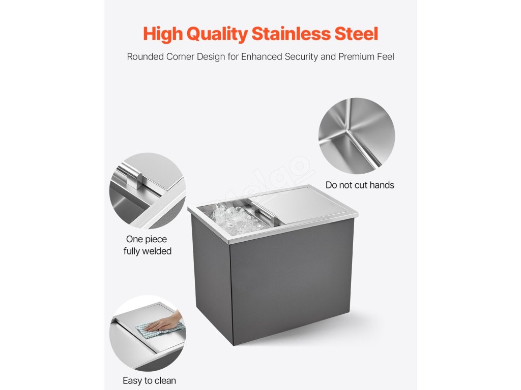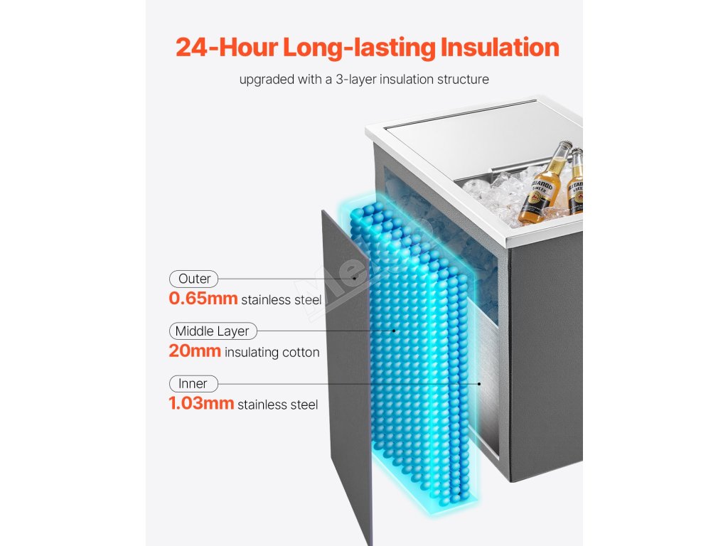 Veľkokapacitný zásobník na ľad z nehrdzavejúcej ocele, ktorý dokáže pojať značné množstvo ľadu a dokonale splní vaše komerčné aj domáce potreby. Dokáže zabezpečiť viac ako 24 hodín izolácie.