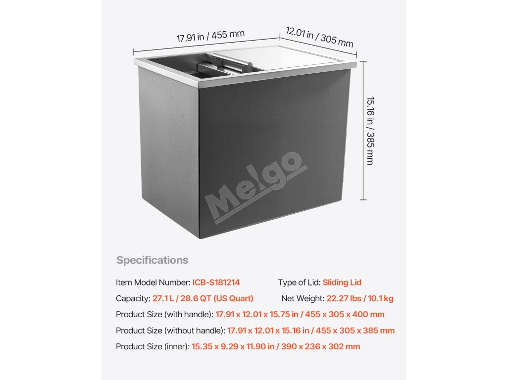 Vstavaná nádoba na ľad nerez 27,1 l 18"×12"×15" (455×305×385 mm)