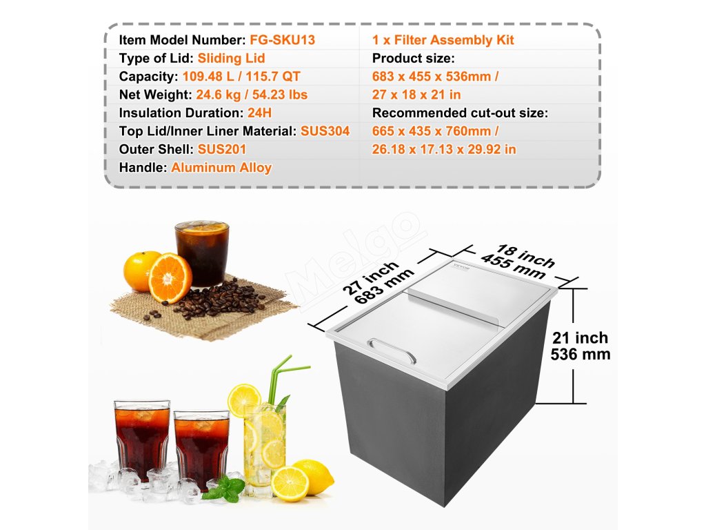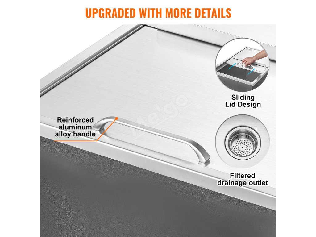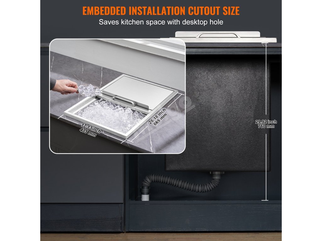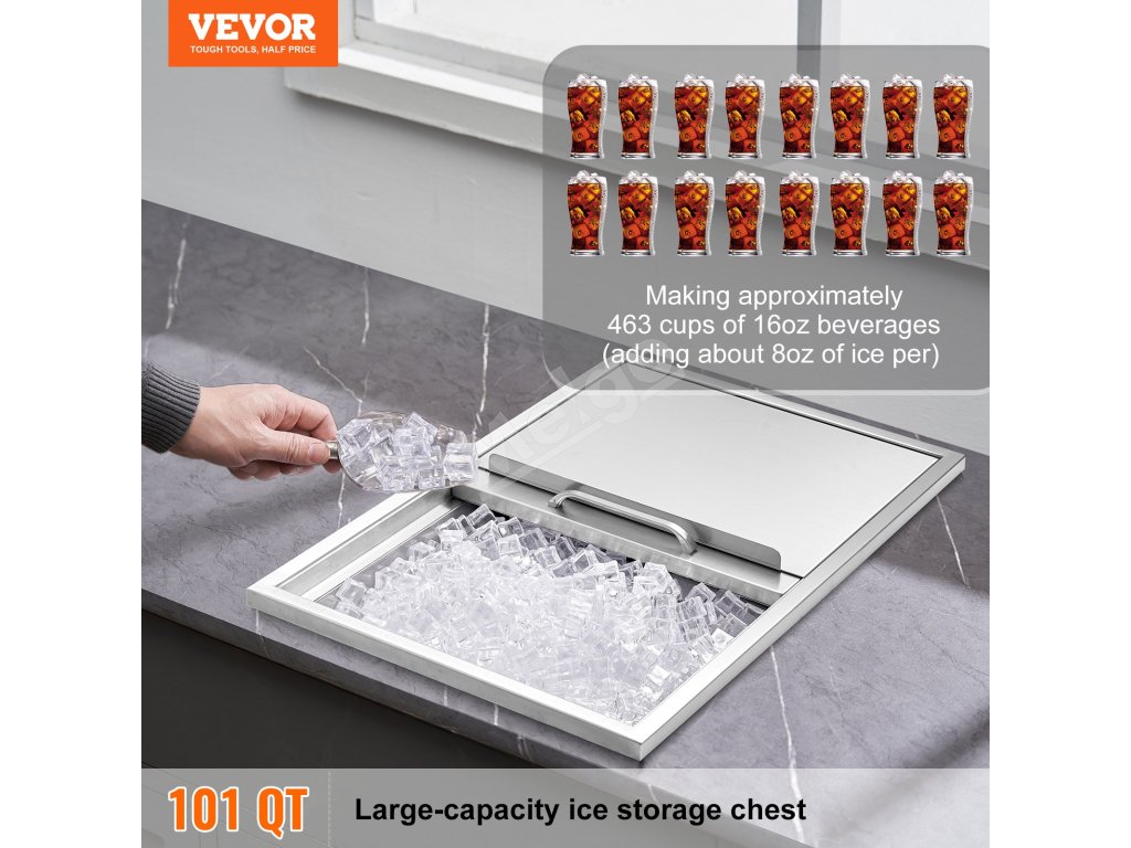 Vstavaný box na ľad 27"L × 18"W × 21"H, nerezová oceľ, 40.9 qt