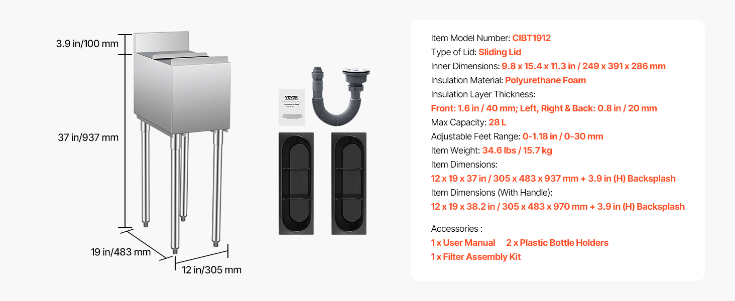 Náš komerčný zásobník na ľad s veľkou kapacitou 28 l kombinuje vynikajúcu izoláciu s pohodlnou funkčnosťou. Je vyrobený z potravinárskej nehrdzavejúcej ocele 304 a zaručuje, že ľad zostane zmrazený až 24 hodín. Je vybavená nastaviteľnými nožičkami, vďaka ktorým sa prispôsobí rôznym povrchom, čo je ideálne na všestranné použitie.
