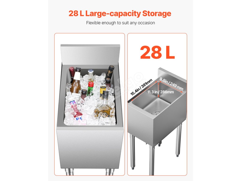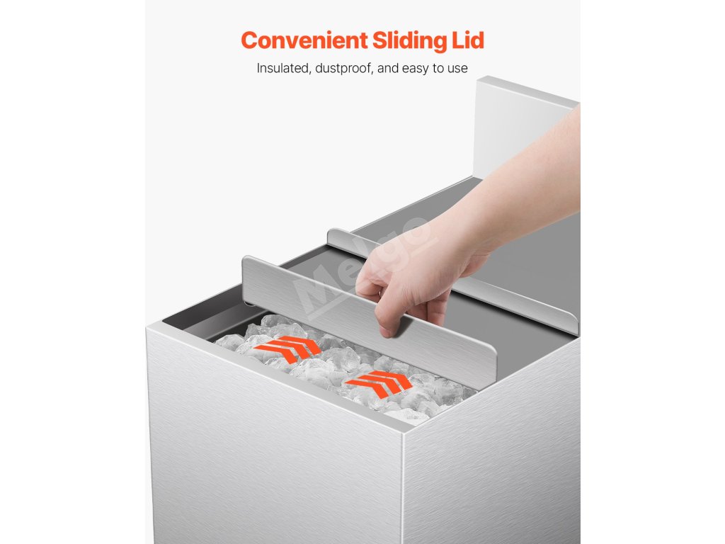 Zásobník na ľad 28 L nerezová oceľ 12×19×37 in, posuvné veko a držiaky