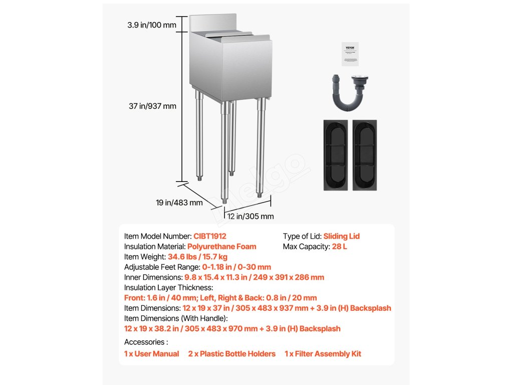 Náš komerčný zásobník na ľad s veľkou kapacitou 28 l kombinuje vynikajúcu izoláciu s pohodlnou funkčnosťou. Je vyrobený z potravinárskej nehrdzavejúcej ocele 304 a zaručuje, že ľad zostane zmrazený až 24 hodín. Je vybavená nastaviteľnými nožičkami, vďaka ktorým sa prispôsobí rôznym povrchom, čo je ideálne na všestranné použitie.
