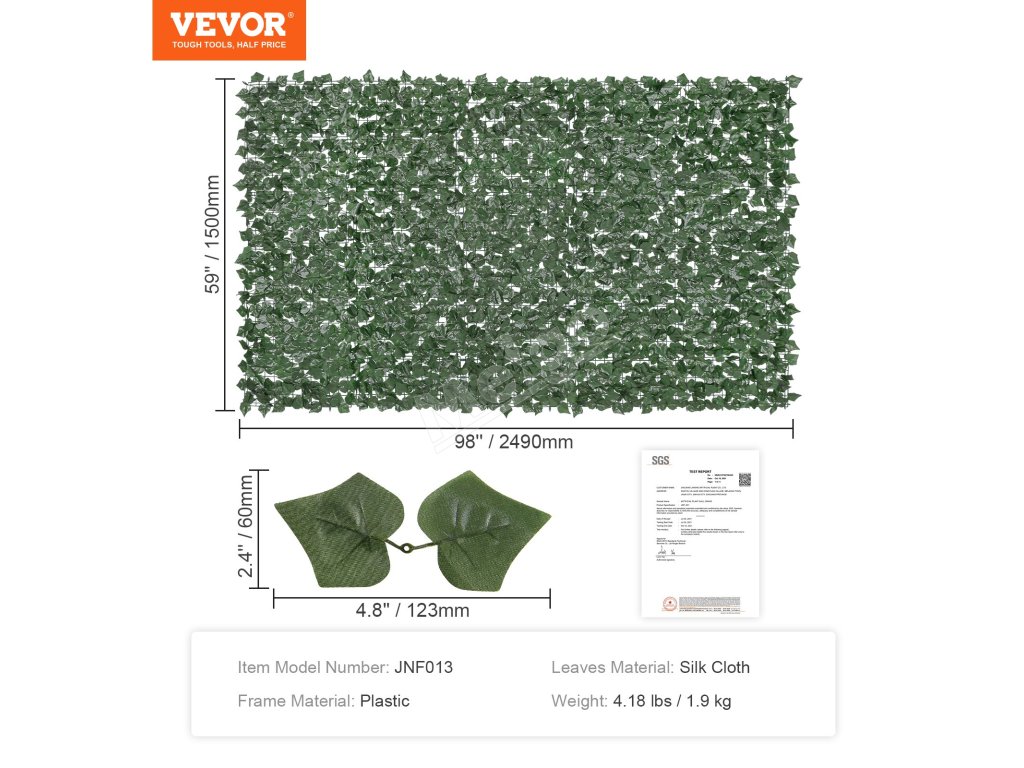 Umelý zelený plot 1500×2490 mm, popínavé listy, spevnené spoje