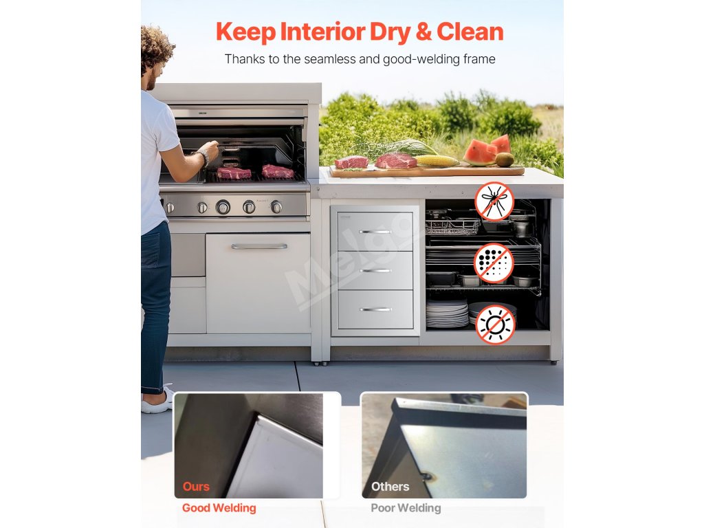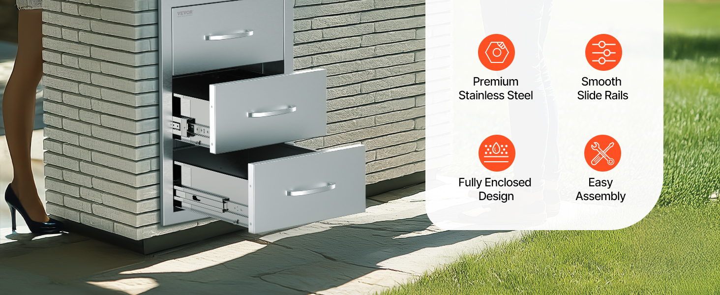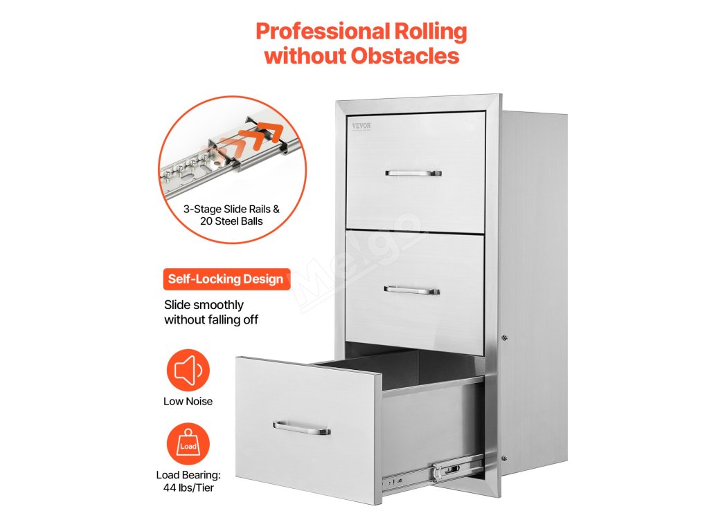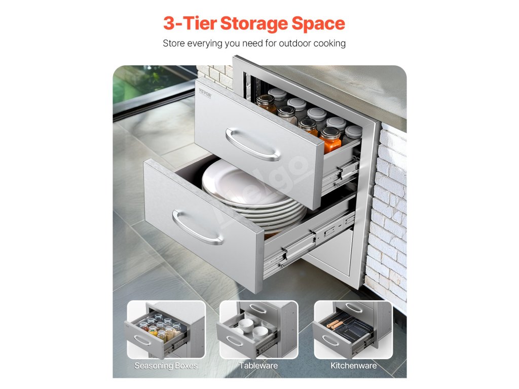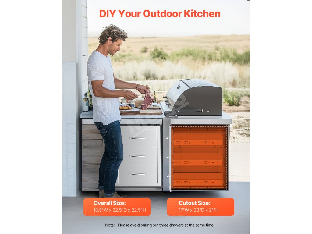 Nerezové trojité zásuvky do vonkajšej kuchyne 18.5"×22.5"×22.5"