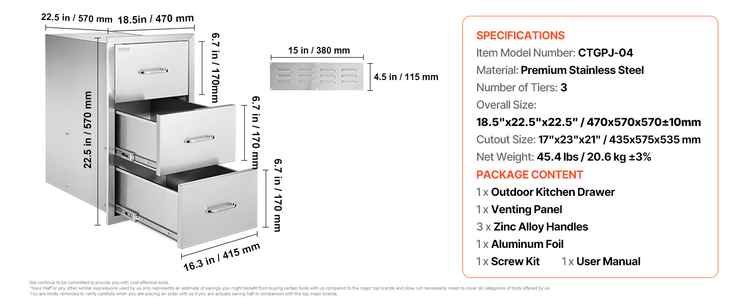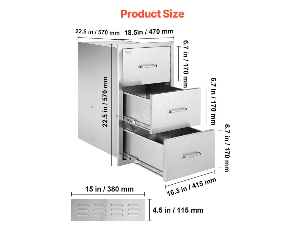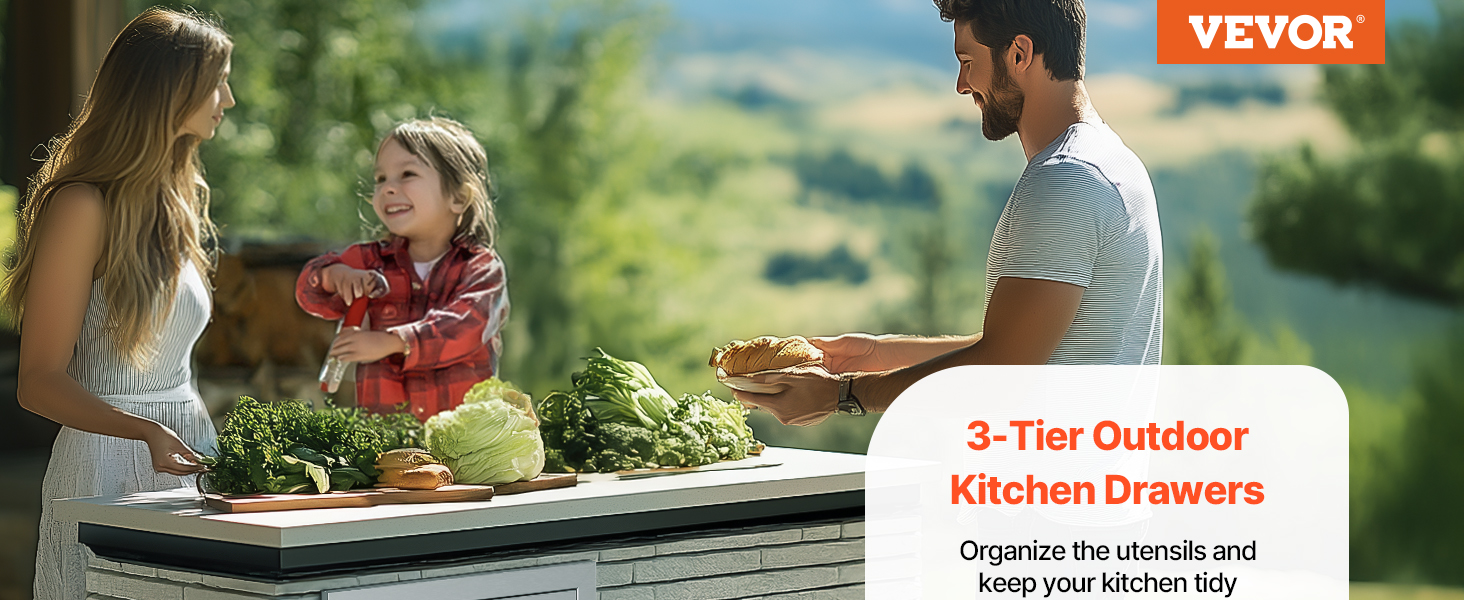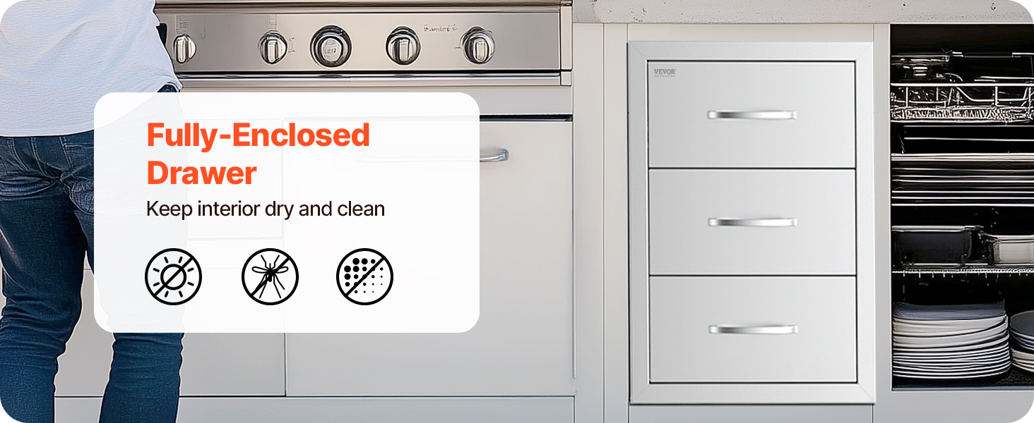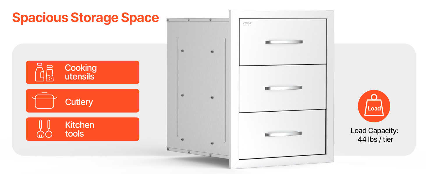 Nerezové trojité zásuvky do vonkajšej kuchyne 18.5"×22.5"×22.5"
