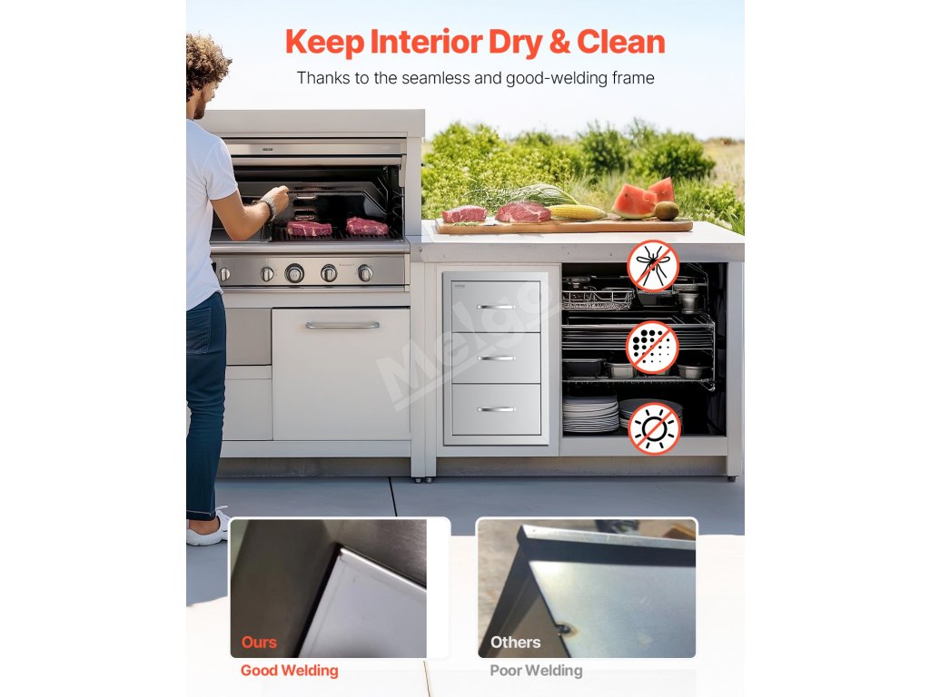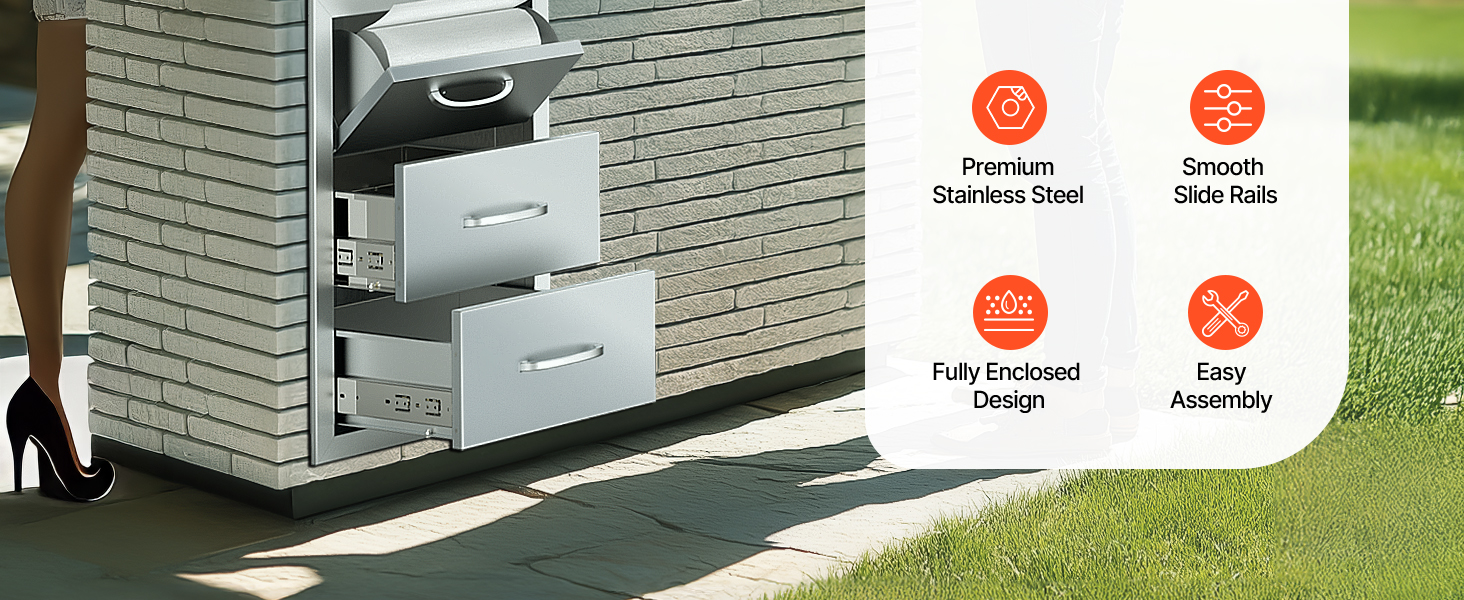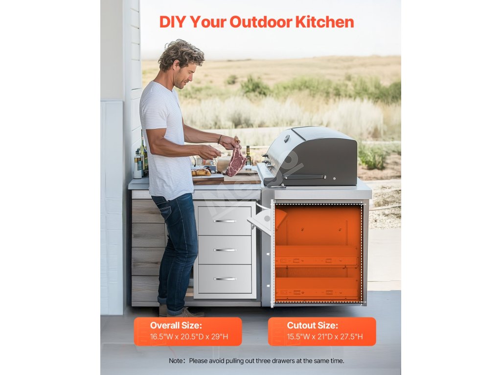 Zásuvková skrinka na gril 3 zásuvky 16.5"W×29"H×20.5"D s držiakom