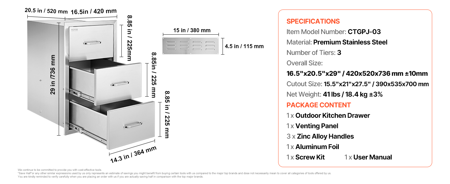 | Veľkosť výrezu | 15.5x21x27,5 palca / 390x535x700 mm |