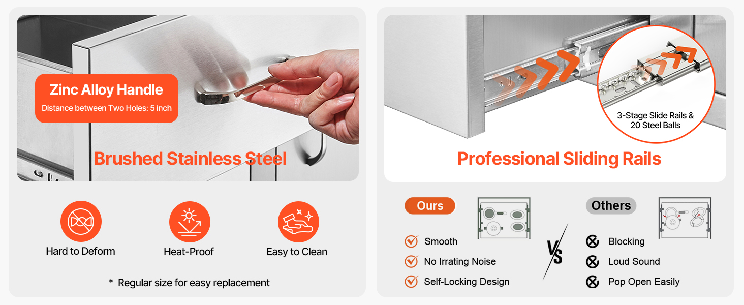Robustné a hladké posuvné lišty sú dobre navrhnuté na otváranie a zatváranie zásuviek bez námahy a bez hluku.