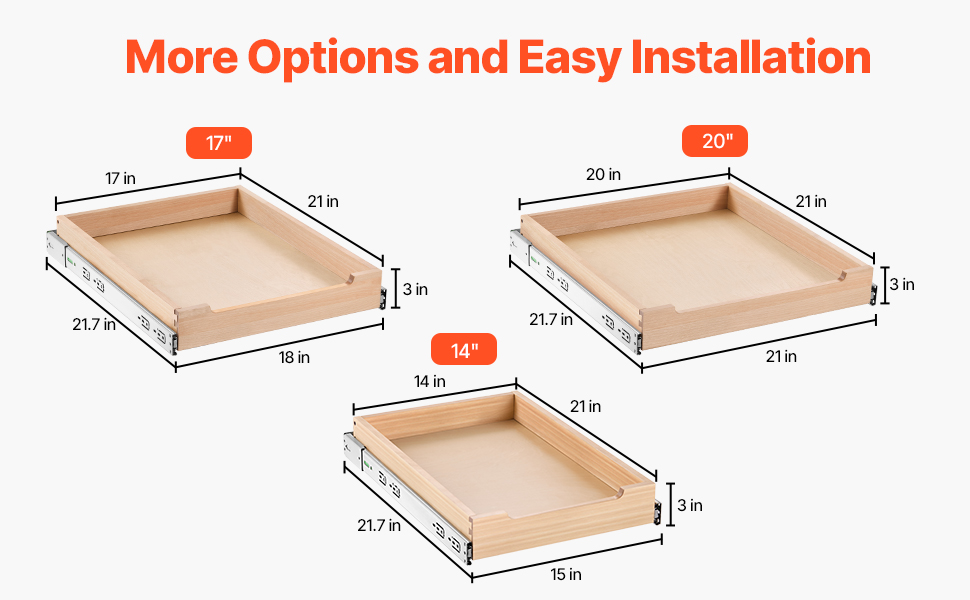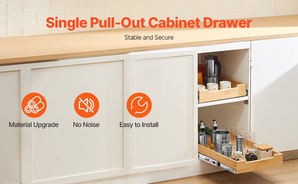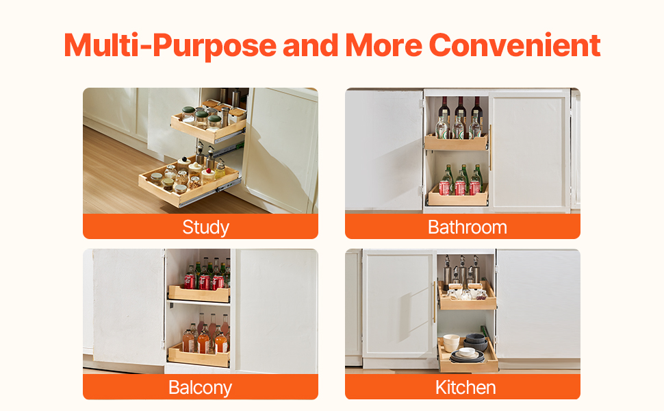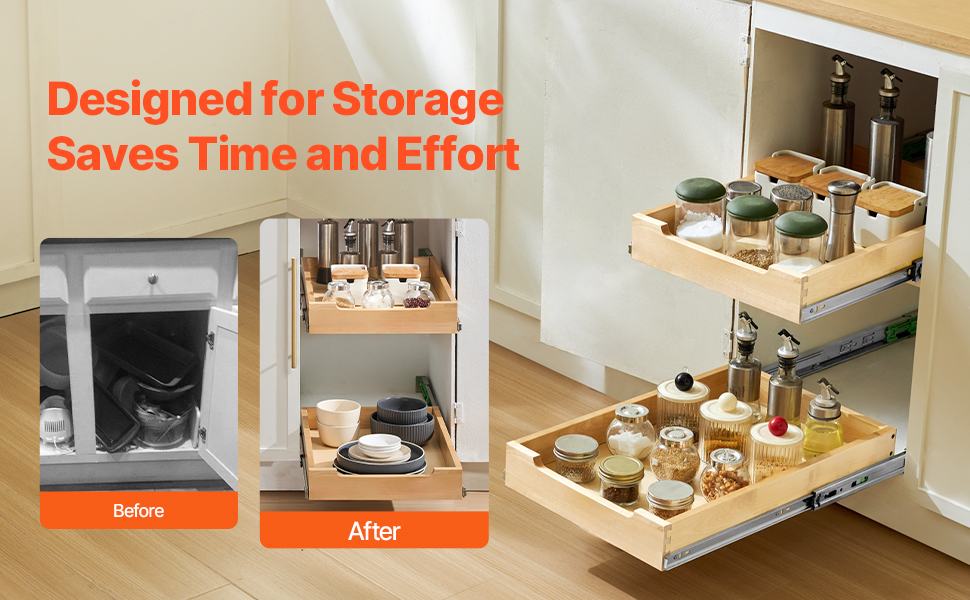 Táto výsuvná drevená polica s mäkkým zatváraním je ideálna na použitie v skriniach, skriniach pod drezom a úložných skrinkách. Maximalizuje využitie priestoru a uľahčuje ukladanie a prístup k hrncom, panviciam a kuchynskému náradiu. Jej elegantný a nadčasový dizajn krásne doplní každú kuchyňu.