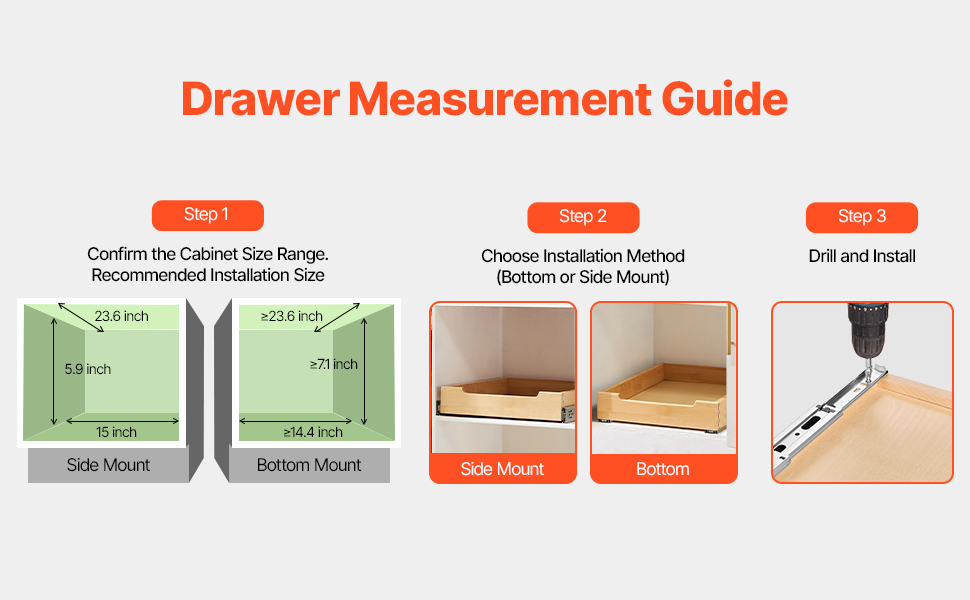 Rozmery zásuvky: 356 x 533 x 76 mm. Vnútorná výška zásuvky: 55 mm. Napriek kompaktným rozmerom ponúka výsuvná zásuvka z ťažkého dreva veľkú úložnú kapacitu.