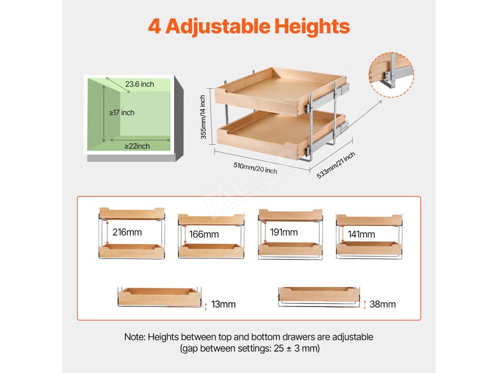 Výsuvný organizér do skrinky 2 poschodia 20"×21" s tlmeným dovieraním