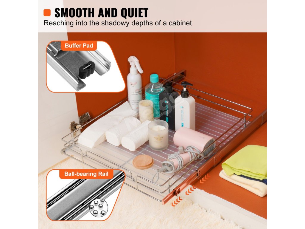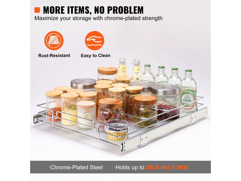 Tento organizér eliminuje potrebu siahať ďaleko do skríň. Každá zásuvka sa hladko vysúva, vďaka čomu je všetko jednoducho a prehľadne vidieť a dosiahnuť. S týmto organizérom môžete udržiavať svoje skrine čisté a upratané. Je ideálny do kuchýň, kúpeľní a priestorov pod umývadlom. Chrómovaná oceľ zaručuje odolnosť a uhladený vzhľad. Tento organizér je neuveriteľne užitočný na maximalizáciu priestoru a zlepšenie dostupnosti. Organizér ľahko zostavíte a nainštalujete za niekoľko minút bez odbornej pomoci. Dokonale sa hodí do rôznych veľkostí skriniek. Vaša zostava sa dodáva s jasným návodom. Nastavíte ho v priebehu niekoľkých minút. Dokonale sa zmestí do rôznych veľkostí skriniek. Tento organizér je navrhnutý tak, aby vám zjednodušil život. Sme tu, aby sme vám uľahčili život! Dokáže efektívne organizovať priestor. Naša pevná konštrukcia zaručuje, že vydrží dlhé roky. Táto stratégia organizovania zahŕňa investíciu do prístupného priestoru bez neporiadku.
