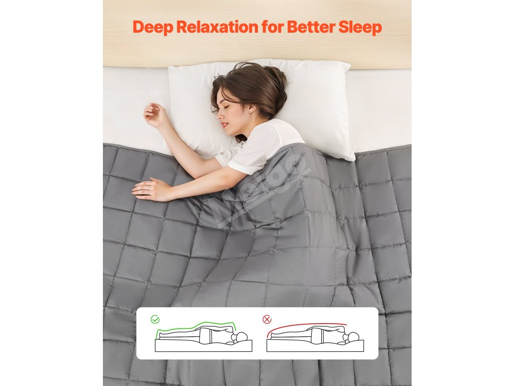 Naša ťažká záťažová deka je navrhnutá tak, aby poskytovala úplné pokrytie a maximálne pohodlie. Či už si užívate sólo spánok, alebo sa delíte o priestor s partnerom, táto deka je ideálna na pokojný spánok.